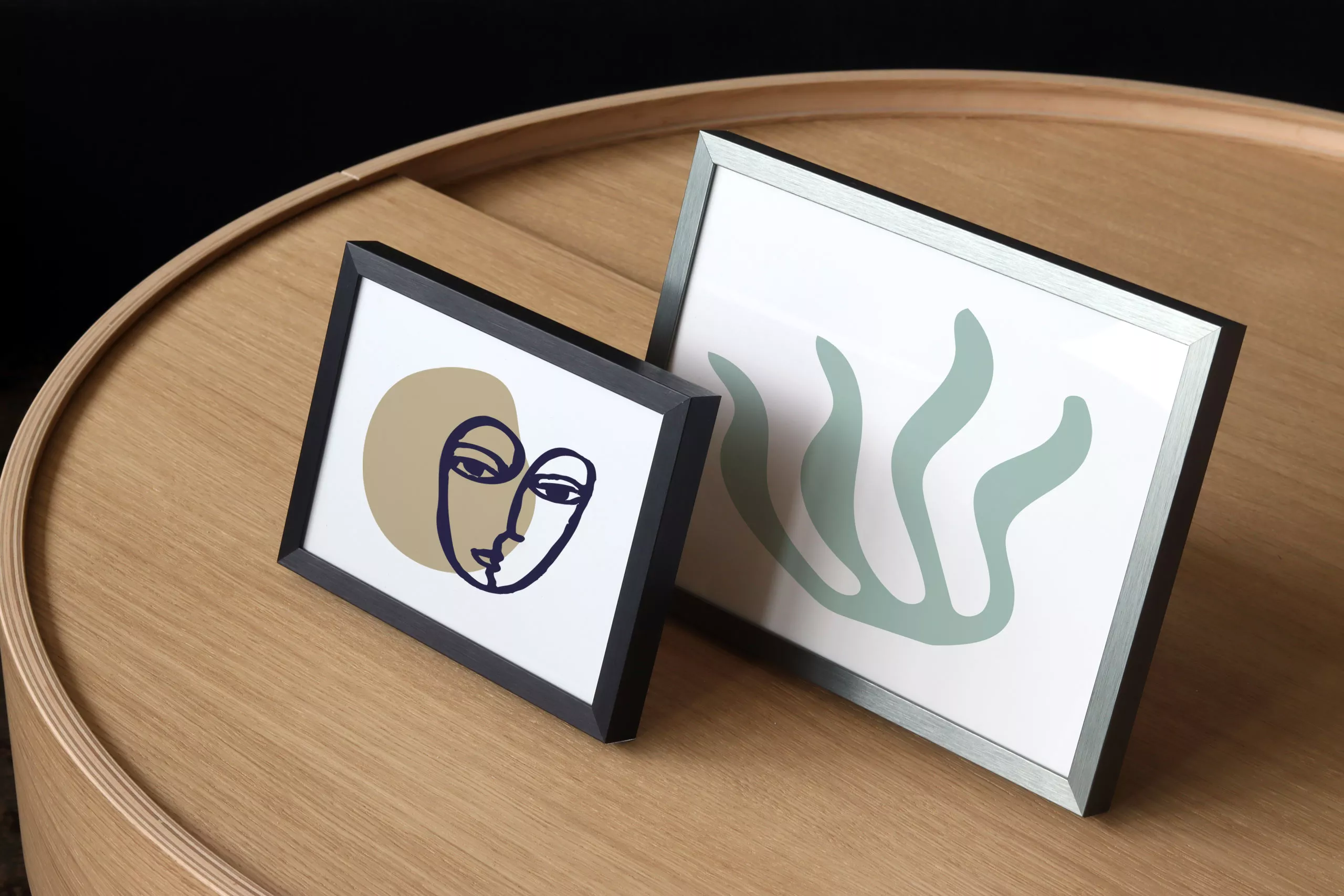 - MDF-Rückwand mit angenieteten Drehfedern für einfachen Bilderwechsel