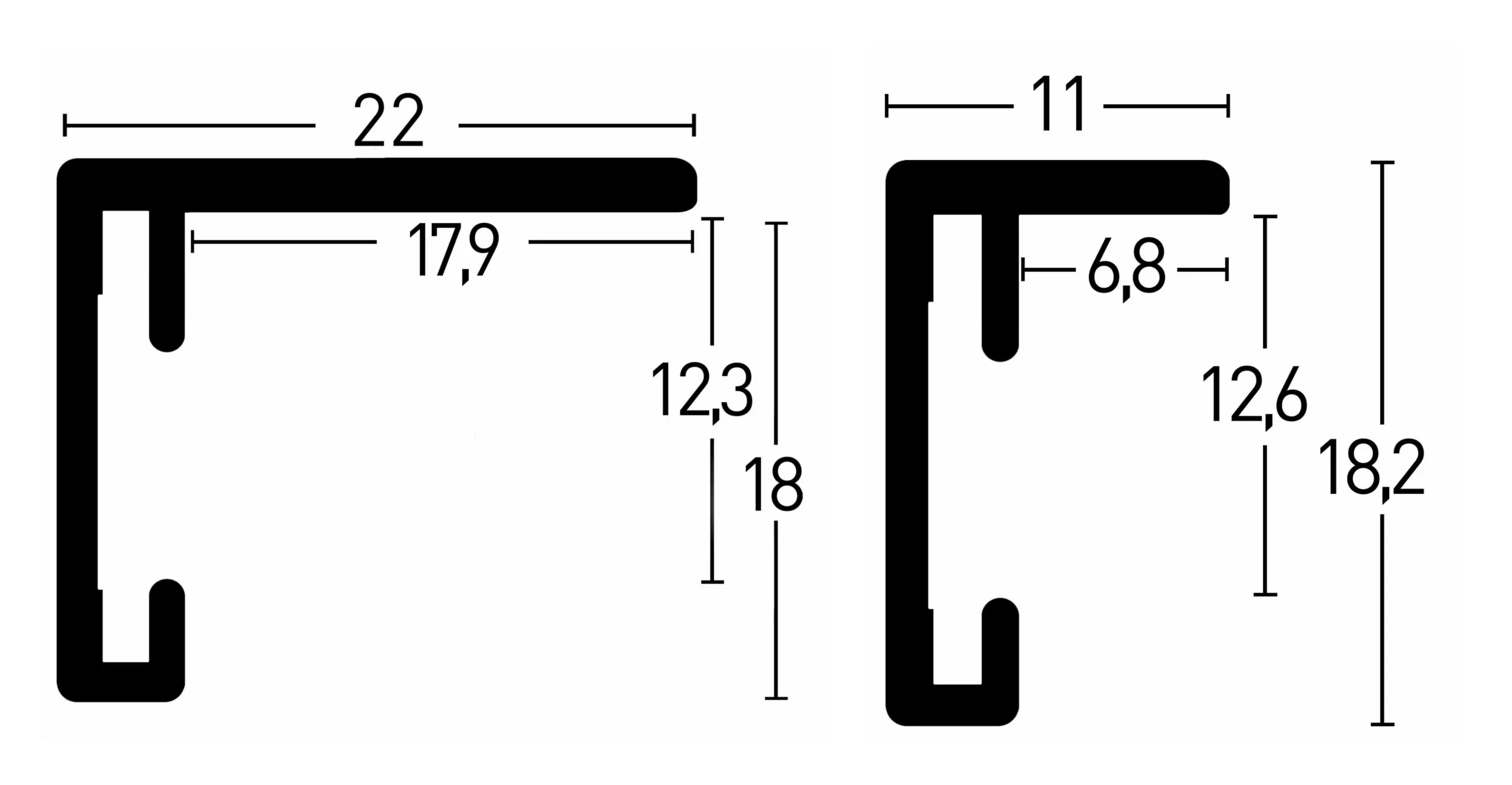 - Breite 22 mm (11 mm) / Höhe 18 mm