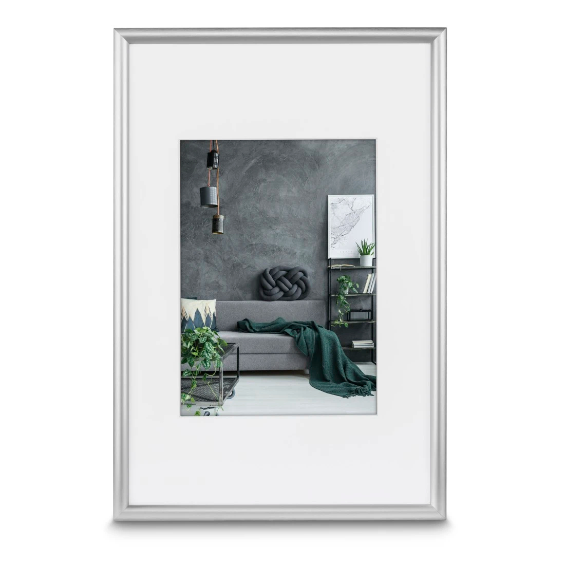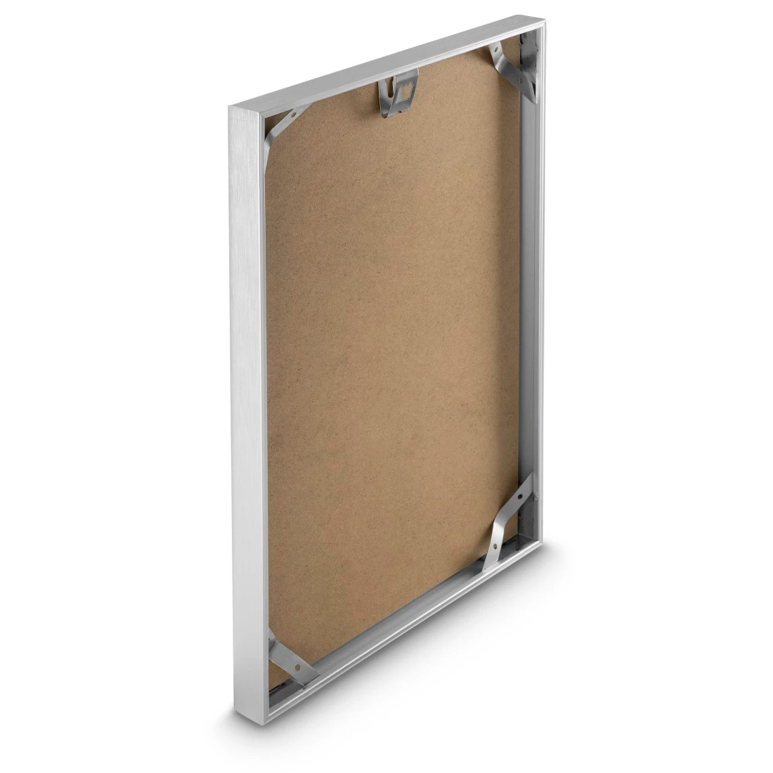 Der Alurahmen Detroit ist ein schlichter Wechselrahmen aus Aluminium. Sein matt eloxiertes Aluminium-Profil gibt diesem Bilderrahmen ein zeitloses, modernes Aussehen für ein stilvolles Wohngefühl. Die Ausstattung dieses Wechselrahmens beinhaltet ein rund geschliffenes und gewaschenes Floatglas, eine Papiereinlage mit vorgestanztem Ausschnitt und ermöglicht ein leichtes Wechseln durch eine Rückwand mit integrierten Schwenkfedern.