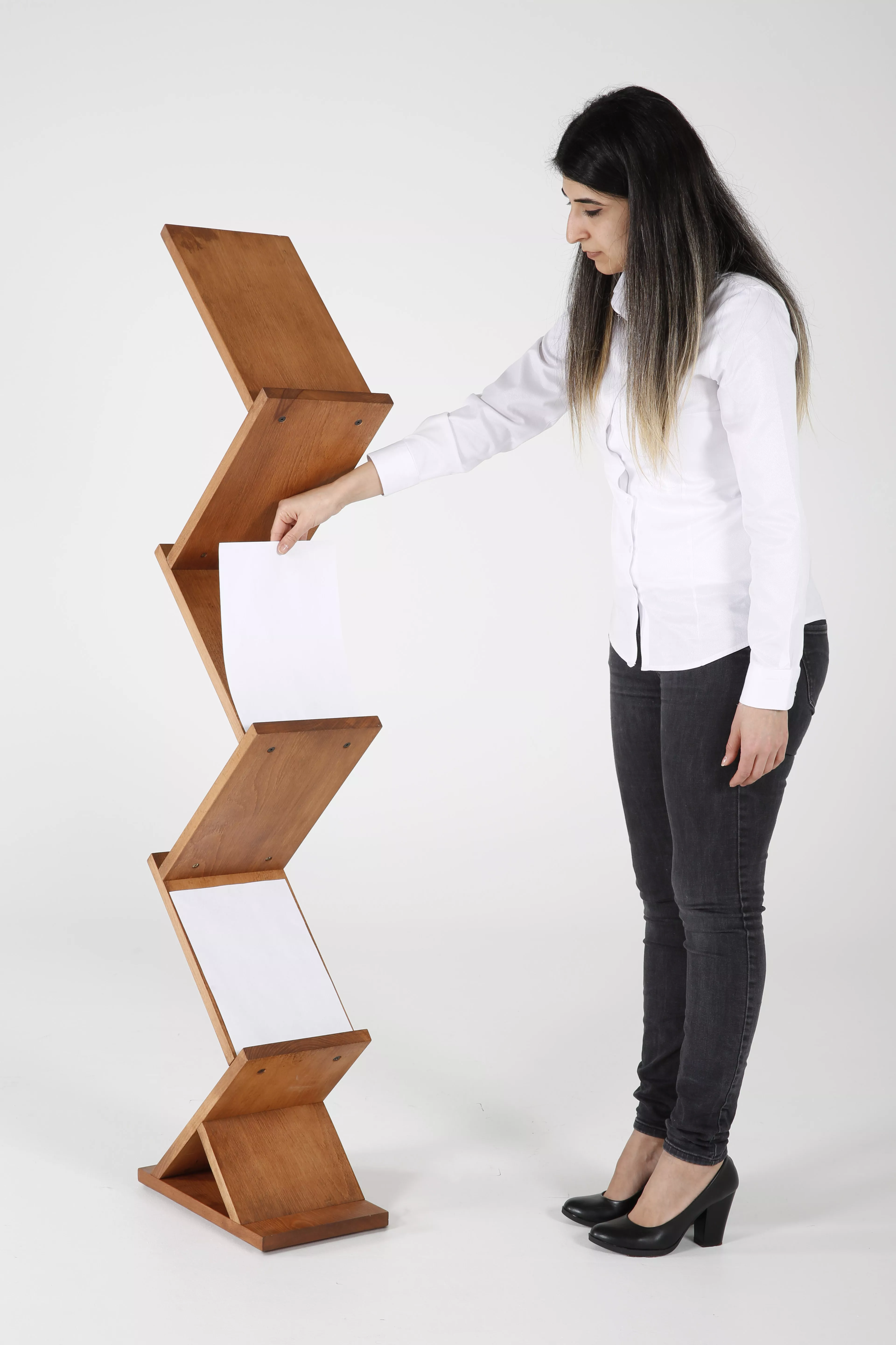 Boden Prospektständer Wood Zick Zack, 5 x DIN A4, dunkles Holz