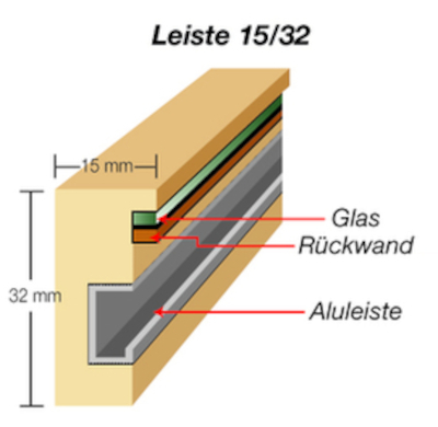 - Mit Normalglas, Acrylglas- und Antireflex-Acrylglas erhältlich