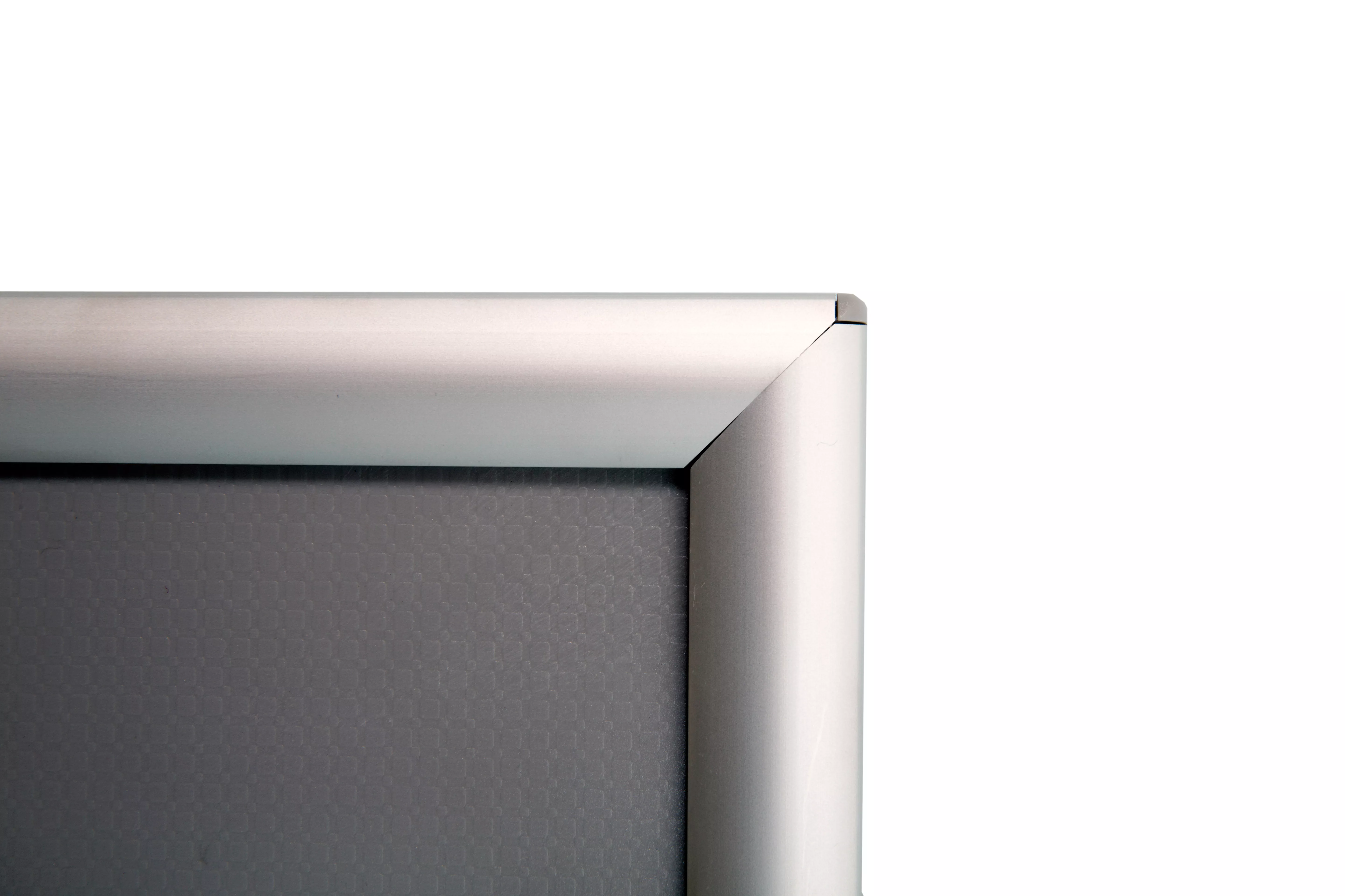 Der multifunktionale Klapprahmen Opti Frame bietet verschiedenste Einsatzmöglichkeiten und kann u.a. auch als Fotorahmen verwendet werden. Bestellbar mit Rondo-Ecken oder Ecken auf Gehrung machen ihn vielseitig einsetzbar. Erhältlich ist der Klapprahmen in Silber.
