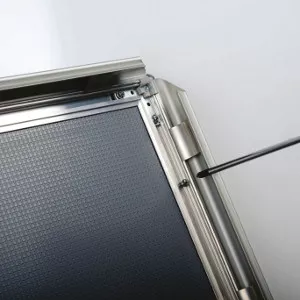 Der kantige und silberne Klapprahmen Profil 20 von UpdateDisplays ist mit seiner Profilbreite von 20 mm ein schmaler Wechselrahmen. Mit seiner silbern eloxierten Profilleiste stellt er vor allem kleinere Posterformate in den Vordergrund.