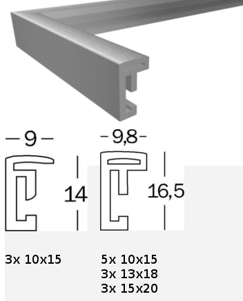Der Kunststoff Galerierahmen New Lifestyle hat ein rechteckiges Profil, welches leicht abgerundet ist. Erhältlich ist der Galerierahmen in 8 Farben und unterschiedlichen Formaten jeweils mit 3 oder 5 Fotoausschnitten inkl. Schrägschnittpassepartout. Der Rahmen überzeugt vor allem durch sein günstiges Preis-Leistungsverhältnis.