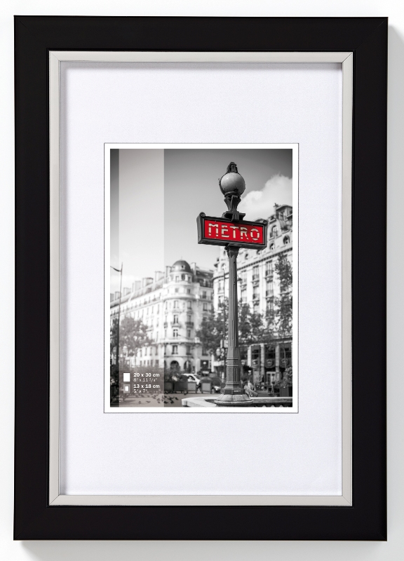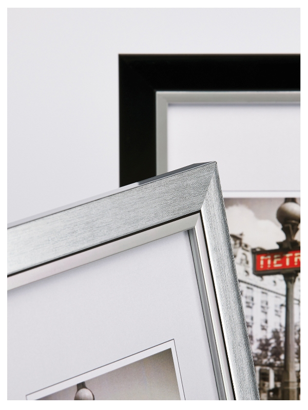 Der Kunststoffrahmen Metro hat ein flachesProfil mit einer zum Bild abgesetzten silber Kante. Es gibt ihn in 4 verschiedenen Farben. Der Kunststoffrahmen rahmt ihre Bilder stilvoll und elegant. Der Rahmen Metro von der Bilderrahmenmarke Walther kommt bis zur Größe 20 x 30 cm mit Aufsteller und ab 30 x 40 cm mit Galerieaufhänger.