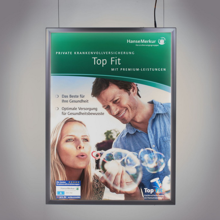 Unser Leuchtrahmen Slim Frame Economy doppelseitig ist mit einer Bautiefe von 30 mm stabil und robust. Die Leuchtkraft wird durch moderne LEDs erzeugt. Mit seiner dezenten Erscheinungsform lenkt er die Aufmerksamkeit auf das beleuchtete Display und ist somit der perfekte Werbeträger für Bilder, Plakate und Werbung.