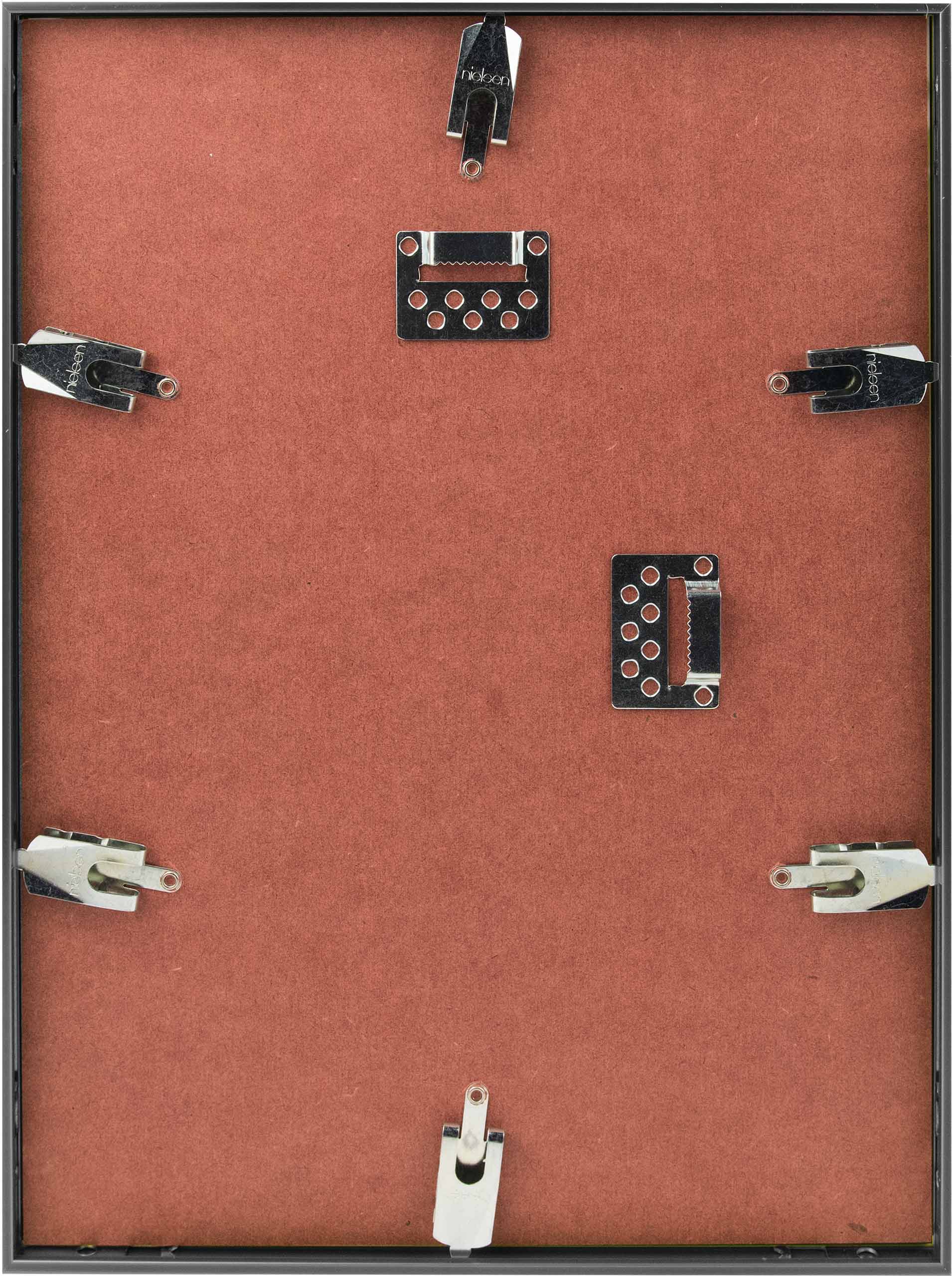 Die Rahmen sind mit einer speziellen B1 Rückwand ausgestattet und werden mit hochwertigen Nielsen Drehfedern und Aufhängern sowie kantengeschliffenem Floatglas geliefert. Bei uns wählen Sie zwischen 10 Formaten von 21,0 x 29,7 bis 84,1x118,9 cm und 3 unterschiedliche Farbgebungen der Aluminium-Wechselrahmen in der Brandschutzkategorie.